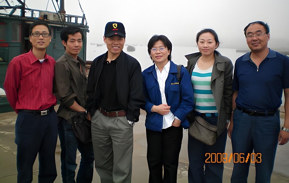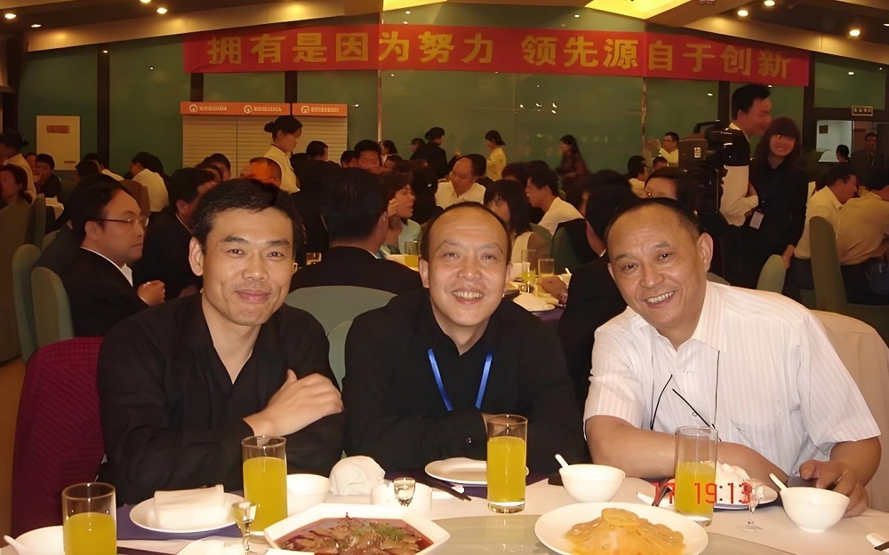 (2008年,格林格电器市场爆破成功,当年开庆功大会!图与董事长余泰成(中)合影留念)