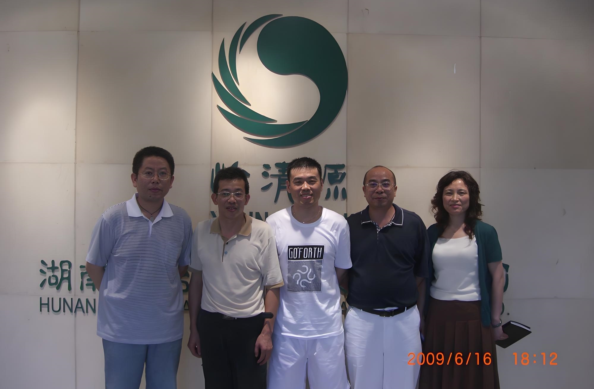 (2009年应邀考察湖南怡情源茶业,并签署合作协议,图为与董事长简伯华和全体管理层合影)