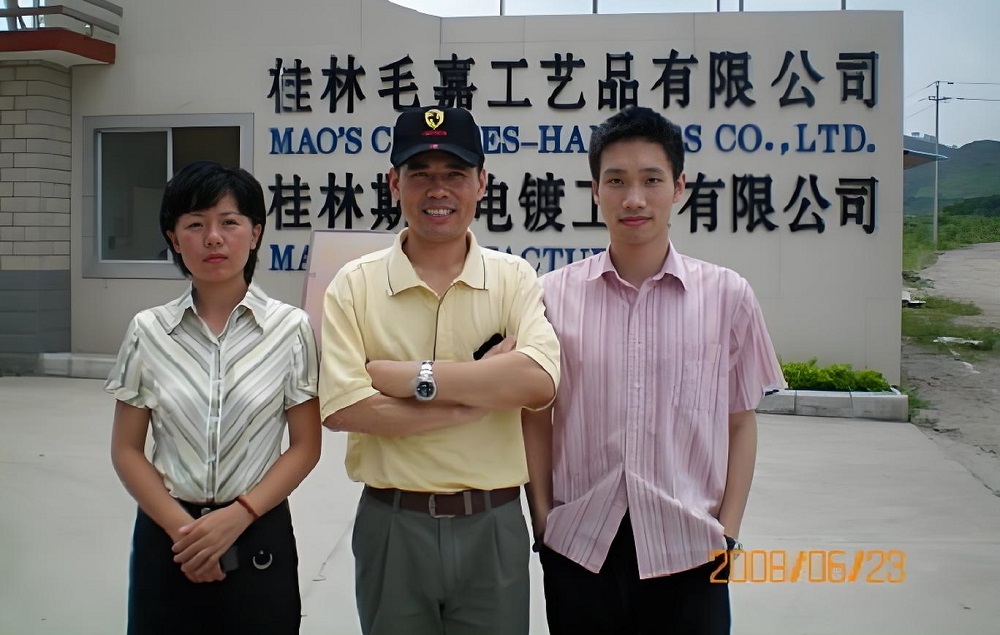 (2007年服务桂林毛嘉衣架,创建“锦衣卫”高级时尚衣架品牌。与公司两位项目组成员合影留念)