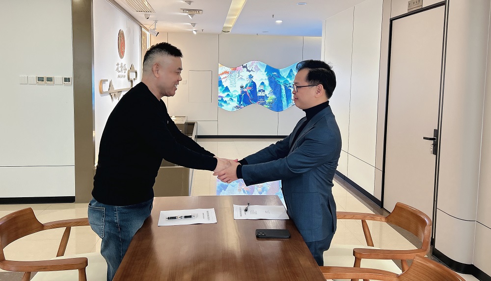 2025年1月6日,沈坤营销策划机构与海南花青谷酒业有限公司在该公司南宁运营中心签署了为期三年的营销策划合作协议,核心项目是为该公司一款花青谷酱香露酒进行全案策划。第二天,花青谷酱香露酒的策划项目顺利启动,率先计划对当下的白酒市场和养生酒市场进行一次全方位的调查,以期能为下一步的品牌营销策略提供策略依据!下图为沈坤策划董事长沈坤老师与海南花青谷酒业李董事长签署合作协议!