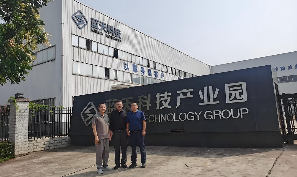 湖南蓝天机器人科技有限公司成立于2007年6月22日,总部位于长沙经济技术开发区,是一家以工业机器人制造和智能设备研发为主的高新技术企业,公司业务涵盖工业机器人、医疗器械、环保设备及电子信息装备生产线等领域。图为沈坤老师与雷董事长(沈坤老师左侧)和陈总经理(沈坤老师右侧)在企业门口合影留念。