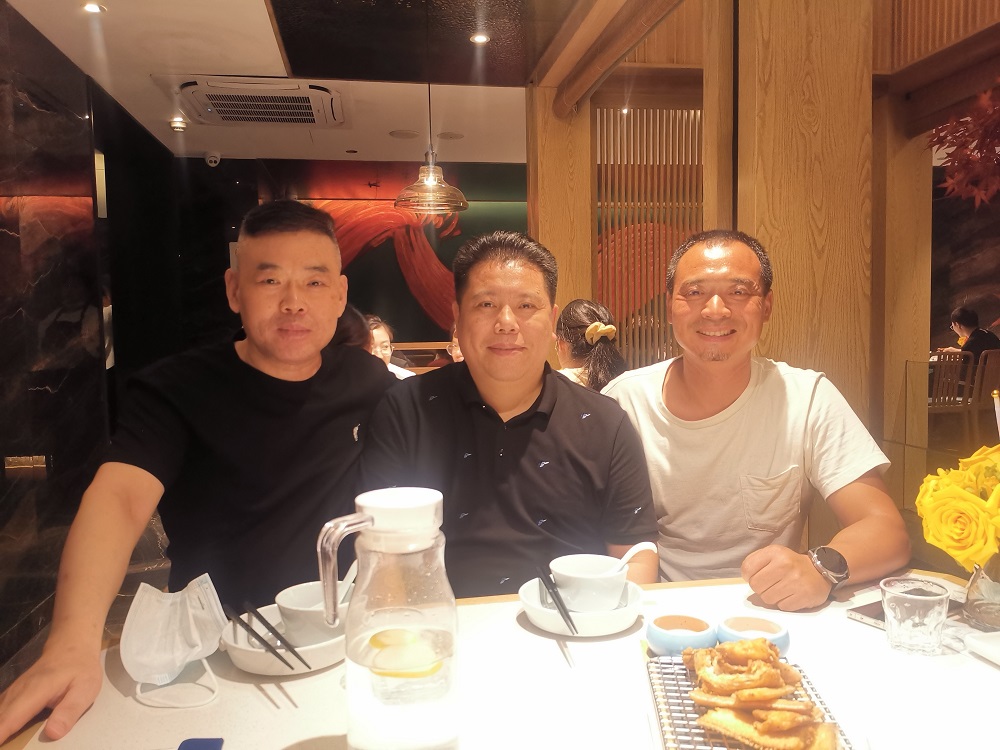 提案后,沈坤老师与企业骨干就方案的下一步执行工作进行了讨论,并突出重点,形成了严谨的执行计划,并就双方分工进行了清晰的界定。晚餐时,罗董事长与邵总经理与沈坤老师合影!目前,方案已经进入执行准备中!