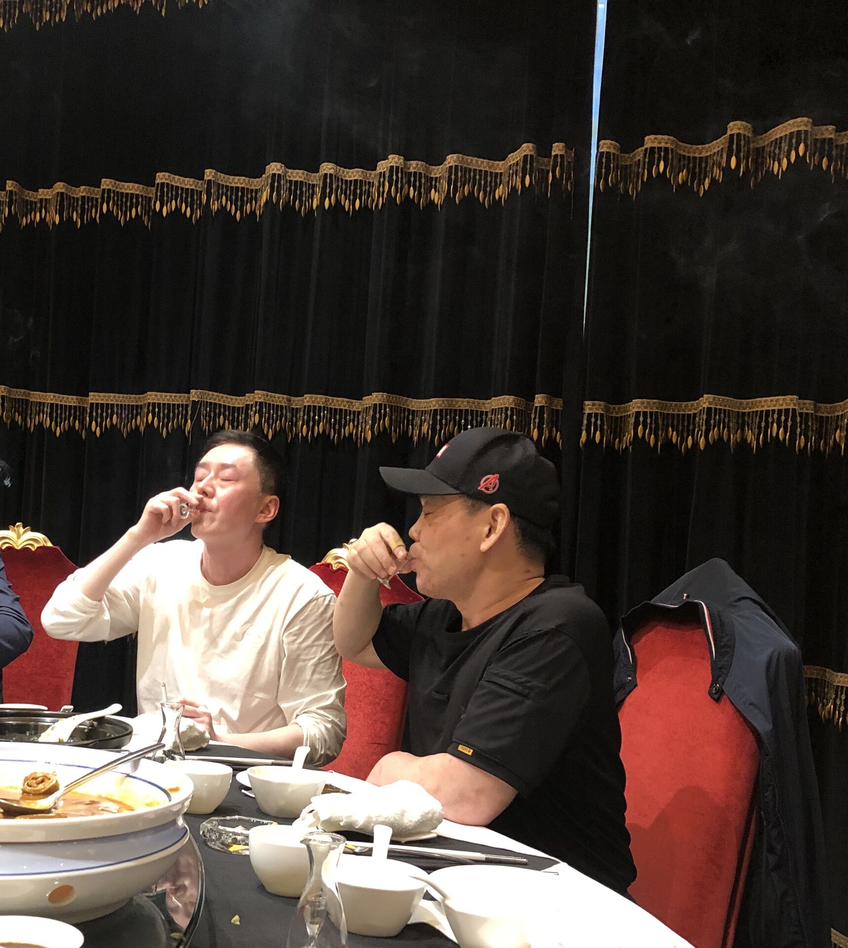 沈坤与听花酒总设计师张雪峰张总合影!张总1.80米的身高,把1.73米的沈坤老师给比下去了:)
